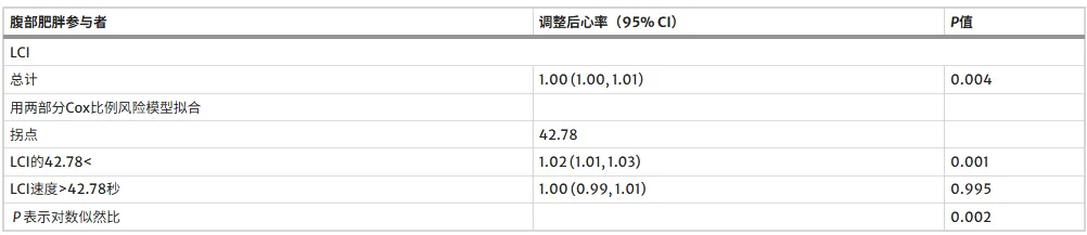 👉采用多变量调整限制性立方样条分析检测非线性关系,结果显示:AO 参与者中,AIP、非 HDL-C 等 5 项指标与 CMM 风险线性正相关(非线性 P>0.05),仅 LCI 呈非线性相关(非线性 P<0.05);经两段 Cox 模型分析,其拐点为 42.78,LCI < 该值时与 CMM 风险正相关(HR=1.02),高于该值则无显著关联。无 AO 参与者中,AIP 等 4 项指标呈线性正相关,CRI-II 呈非线性相关,拐点为 4.06,拐点后与 CMM 风险显著正相关(HR=2.07),拐点前无关联。