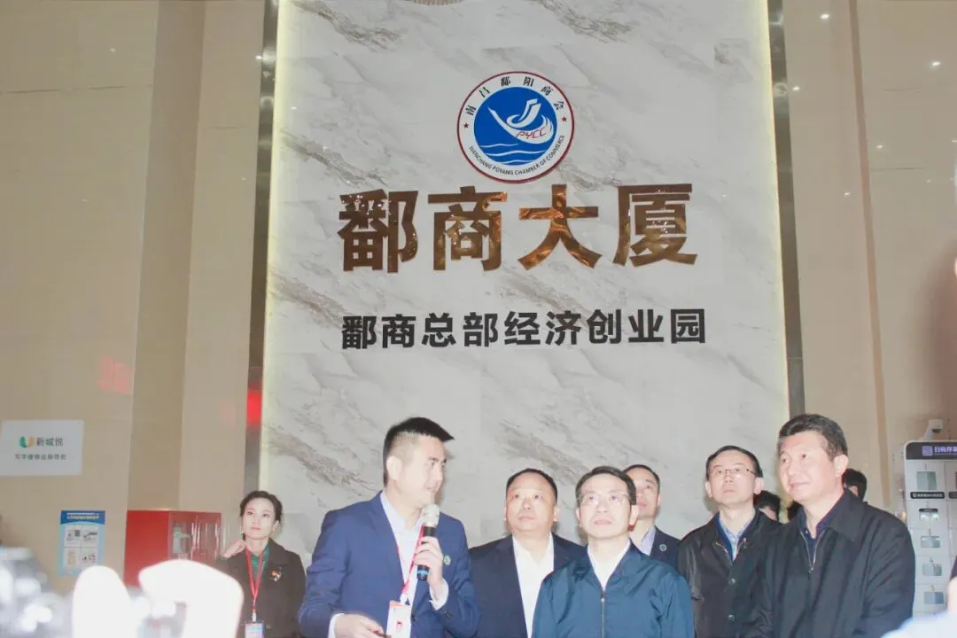 黄喜忠部长一行参观了鄱商大厦一楼大厅,并听取了南昌鄱阳商会基础建设情况汇报和鄱商大厦打造历程、企业入驻情况,以及“厚德实干、义利天下”赣商精神标语的含义及其他标语展牌的设置意义!