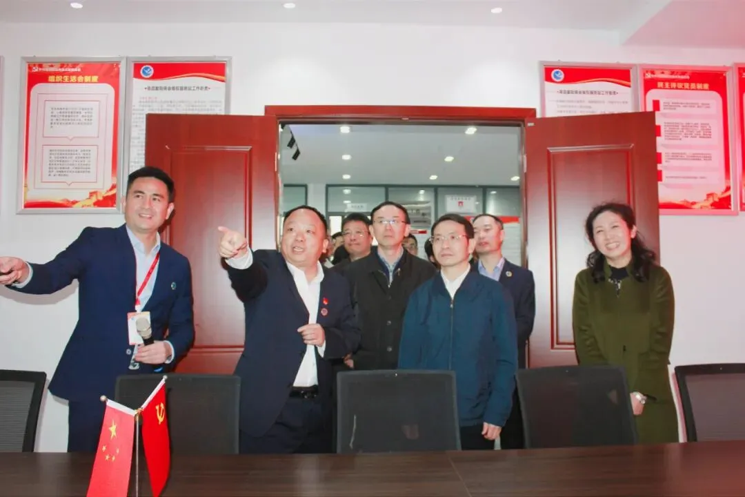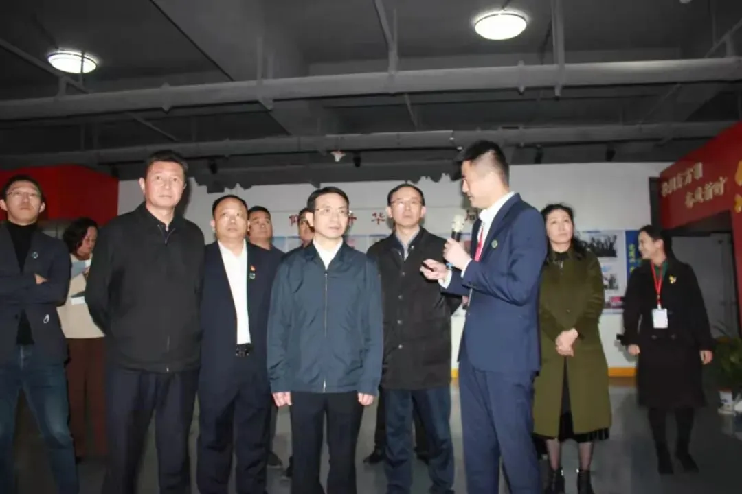 黄喜忠部长一行还重点参观了位于鄱商大厦18楼的鄱商党建中心“五红工程”展厅,并详细了解南昌鄱阳商会党建“五红工程”的打造背景、核心理念和基本含义!黄喜忠部长在参观商会党建“五红工程”后,对南昌鄱阳商会党建工作也给予充分肯定,希望南昌鄱阳商会要继续强化党建引领,发挥工商联所属商会的统战职能和作用,努力将全体会员团结和凝聚在党和政府周围,同时也鼓励随行地方领导多给予我会相关建设更多的支持和关心,帮助我会充分利用商会大楼的硬件设施来打造其他更有意义的内容。