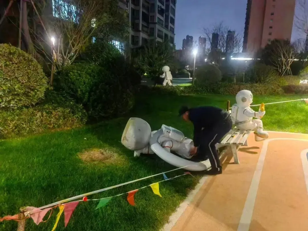 夜幕降临,他们又化身“守护使者”,展开武装巡逻,脚步坚定有力,守护着小区的每一寸土地,让我们在静谧的夜里安心入眠。正是因为他们的坚守,我们的家园才如此温馨有序。