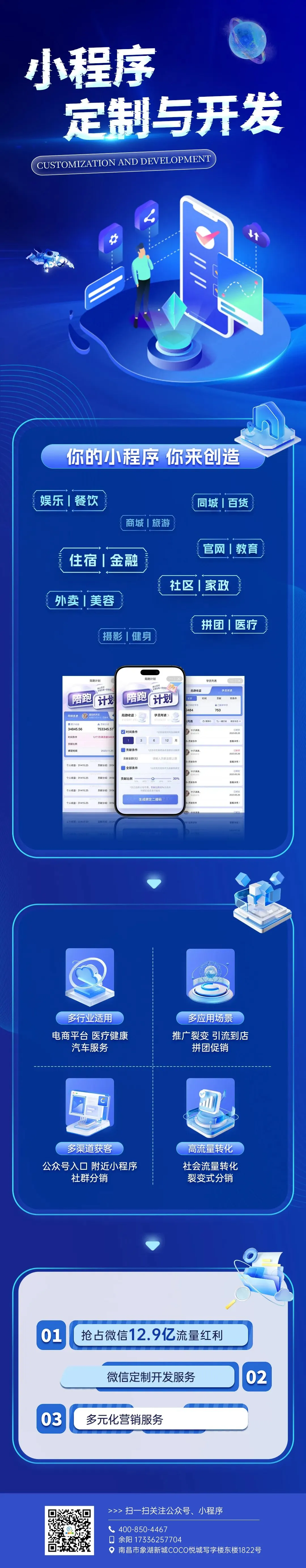 我们的公司专注于软件开发、小程序、移动应用程序的设计、运营及落地陪跑服务。凭借专业的技术团队和丰富的行业经验,我们致力于为南昌的企业提供定制化的解决方案,助力其数字化转型与升级。从创意构思到产品上线,从功能优化到市场推广,我们全程陪伴,确保项目的顺利实施与高效运营。