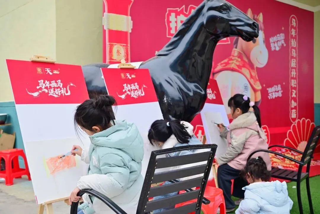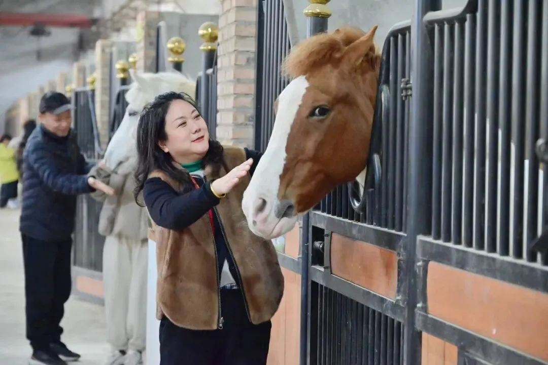 在掼蛋比赛激烈进行的同时,未参赛的会员及家属们也开启了丰富多彩的休闲体验之旅。大家走进百峰岭国际马会的马厩,近距离了解马匹习性,感受马术文化的独特魅力;不少会员及家属化身“小小骑士”,在专业教练的指导下体验马术训练、驰骋马场,尽享驭马前行的乐趣。此外,现场作画、围观杀猪、拍摄全家福、订购土黑猪及土香猪肉等活动也备受青睐,传统年俗与休闲娱乐完美融合,让大家在欢乐互动中感受浓浓的年味与乡情。