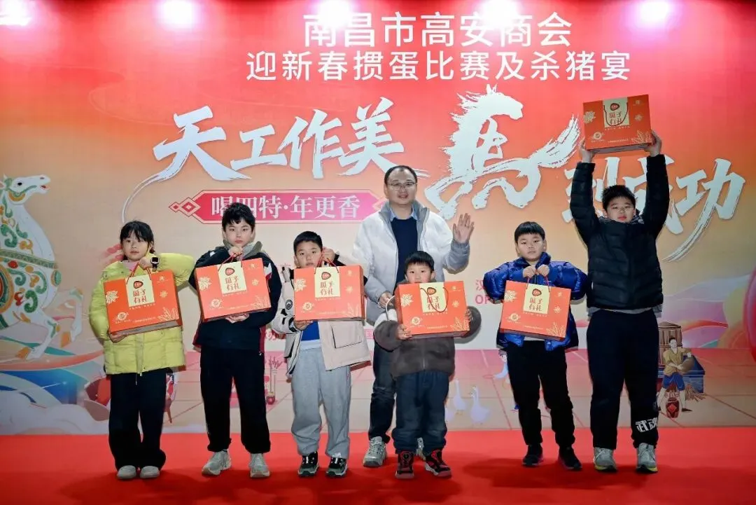 紧接着,独具高安风味的杀猪宴正式开席。热气腾腾的杀猪菜、肥而不腻的红烧肉,一道道充满乡土气息的佳肴,唤醒了游子们心底最深处的乡愁。值得一提的是家属小朋友“只要上台,就有奖品;只要参与,就有礼物”的暖心理念,让每一位到场的小朋友收获到了幸福快乐,现场洋溢着普惠共享的温馨与幸福。