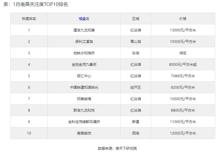 >独家揭秘!1月南昌人气楼盘榜单一览