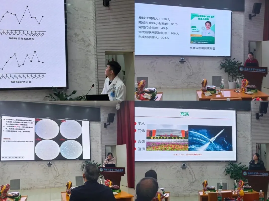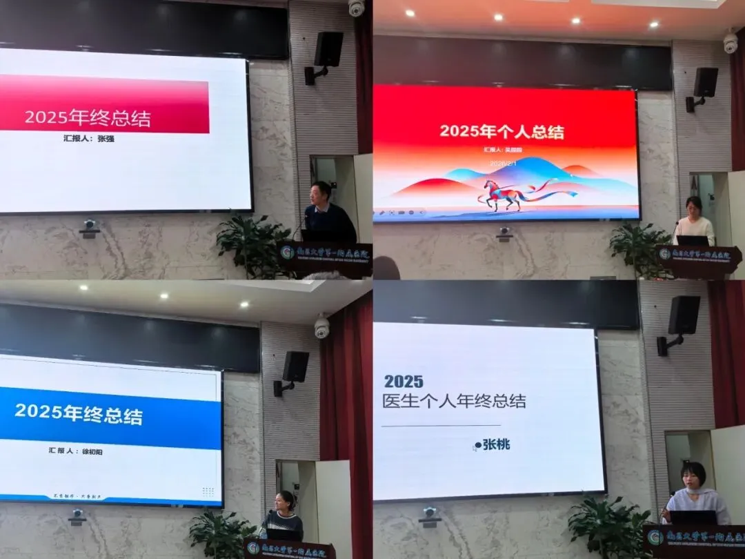 随后,一线医生依次上台汇报2025年个人业绩并展望2026年工作。各位医生深耕医教研融合发展,总结过去一年在临床诊疗、技术创新、科研探索及教学传承中的成效,主动投身科普讲座、公益义诊等志愿服务。全体医生纷纷表示,2026年将锚定科研能力提升核心目标,深耕专业、推动医教研协同提质。