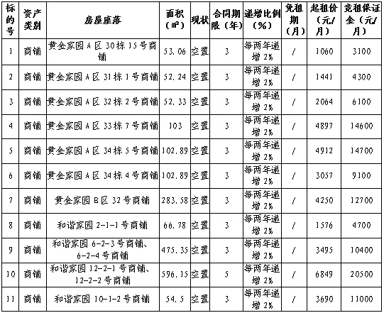 1、本次竞租标的依现状竞租。出租单位所提供的有关资料及说明仅供竞租人参考,竞租人在竞租前必须亲自审验竞租项目情况,出租单位不承担瑕疵担保责任。竞租人一经应价、报价,即表明竞租人完全接受标的现状,竞租成交后竞租人不得以任何理由拒绝履行相关款项的缴纳、文件的签署以及承担的义务;