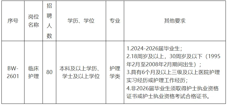 3、具有护理专业全日制大专及以上学历的应/往届毕业生(应届毕业生最迟在2026年7月31日提供毕业证,否则将取消培训资格)。
