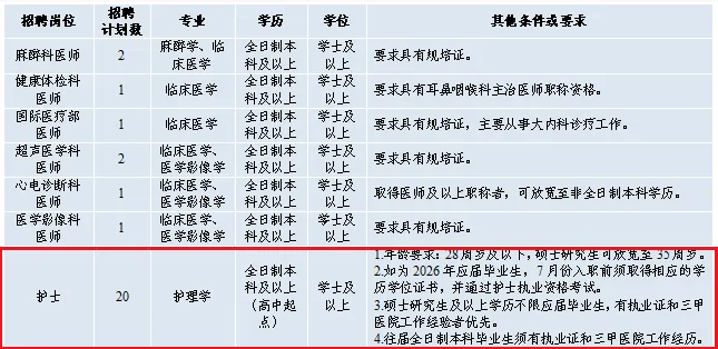 4、取得执业护士资格证,或已通过护士执业资格考试(应届毕业生最迟在2026年7月31日提供成绩合格证明,否则将取消培训资格)。