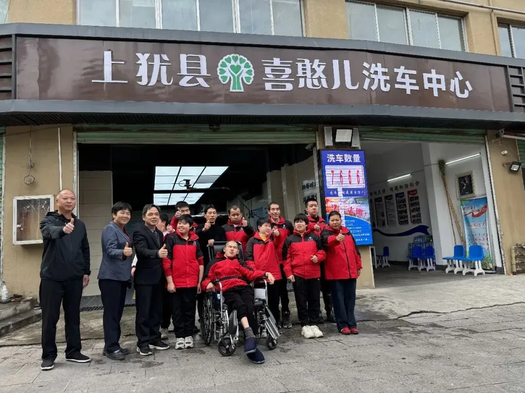 最后来到上犹县喜憨儿洗车中心,实地察看残疾人的工作环境,详细了解技能培训、薪资待遇等情况并与他们亲切交流。慰问组一行对洗车中心为残疾人提供就业平台、助力融入社会的举措给予高度肯定。杨兴国副秘书长强调,要持续优化残疾人就业创业环境,鼓励更多社会力量参与助残事业,让残疾人在劳动中实现自我价值。