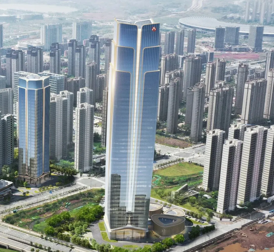 一江两岸,是南昌城市发展脊梁,从红谷滩CBD,到凤凰洲,再到朝阳新城,沿江两岸树立的高楼大厦,形成了极为壮观的天际线景观,同时也见证了城市滨江发展时序。而在一江两岸的发展序列中,九龙湖新城早已经入列,滨江片区在沉淀数年之后,天际线终于在今年迎来了爆发。从项目现场进度看,市政项目南侧超高层主体结构已经全部封顶,现正在进行玻璃幕墙安装施工,预计将于今年完工。市政北侧的超高层(市政公用大厦)也已经全面进入了地上主体结构施工,目前已经施工至地上7层。从建筑布局看,该地块主要由1栋49层(248.9米)超高层建筑和多栋多层商业和办公配套组成,超高层整体为方形,采用花瓣式设计,同时在建筑外角采用金色元素镶边。