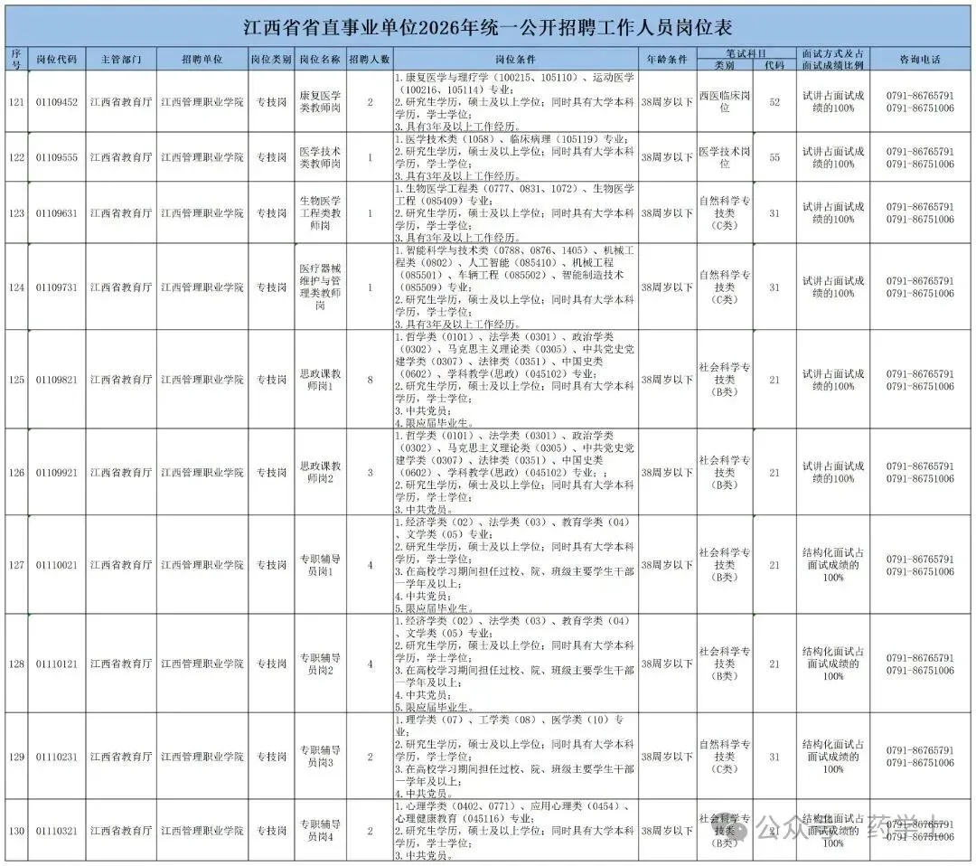 1.江西省省直事业单位2026年统一公开招聘工作人员岗位表