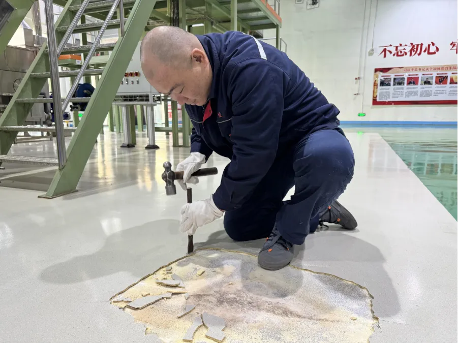 为落实现场精益管理要求,保障生产安全有序推进,近日,江西中烟工业有限责任公司南昌卷烟厂制丝车间对排查发现的车间路面破损隐患,组织人员自主开展路面修缮工作。车间科学规划施工区域,做好周边设备设施的防护措施,精准安排作业时段,实现施工与生产工作错峰推进、互不干扰。施工期间,作业人员严格遵循现场管理标准,依次完成地面清洁、打磨等工序,着力打造整洁、规范、安全的标准化现场作业环境。