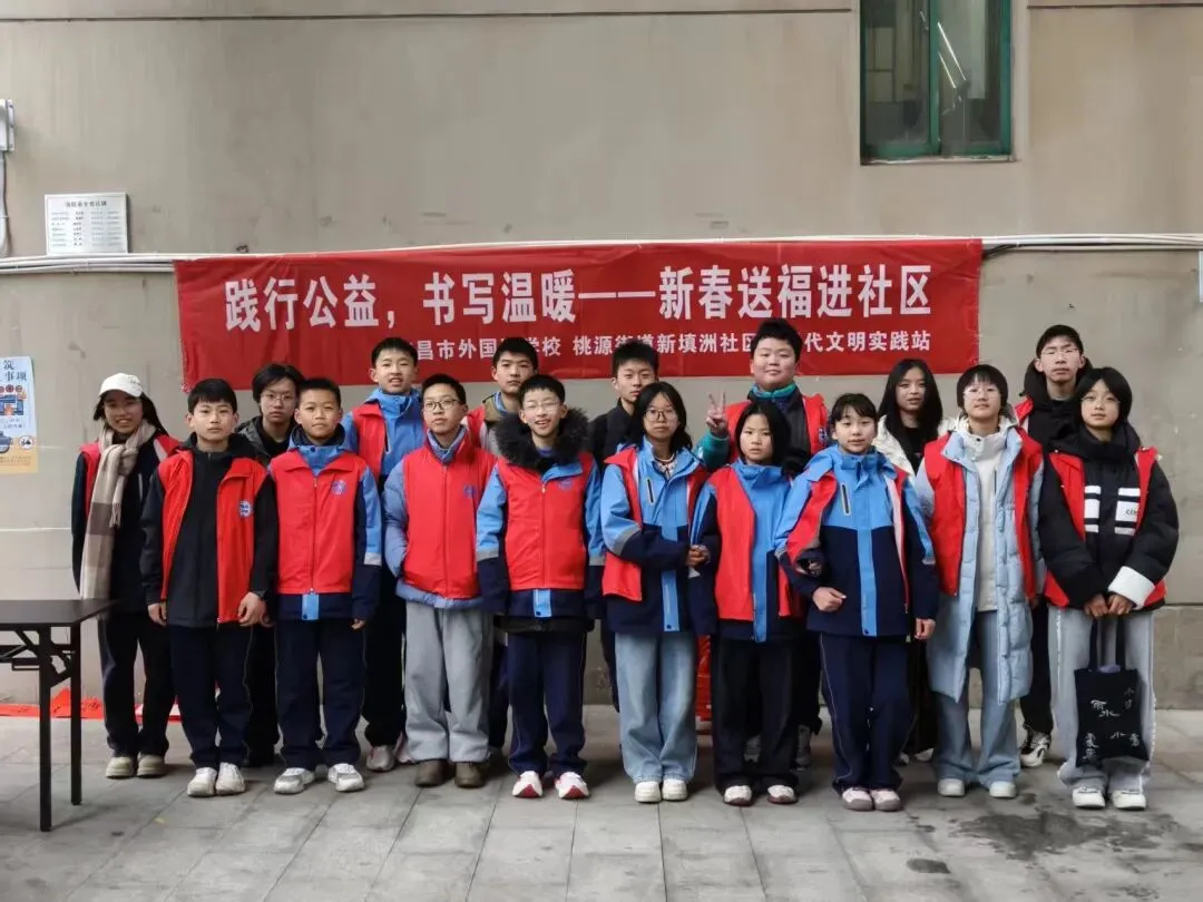 2026年1月31日(农历丙午年腊月廿三),南昌市外国语学校的师生们走进桃源街道新填洲社区,开展“翰墨迎春·福至邻里”送春联新时代文明实践活动,以笔墨传递祝福,以温情联结社区。