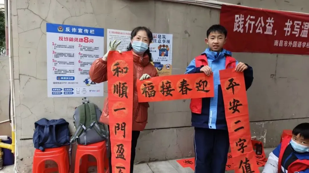 翰墨迎春,福至邻里——南昌市外国语学校师生走进桃源街道送春联