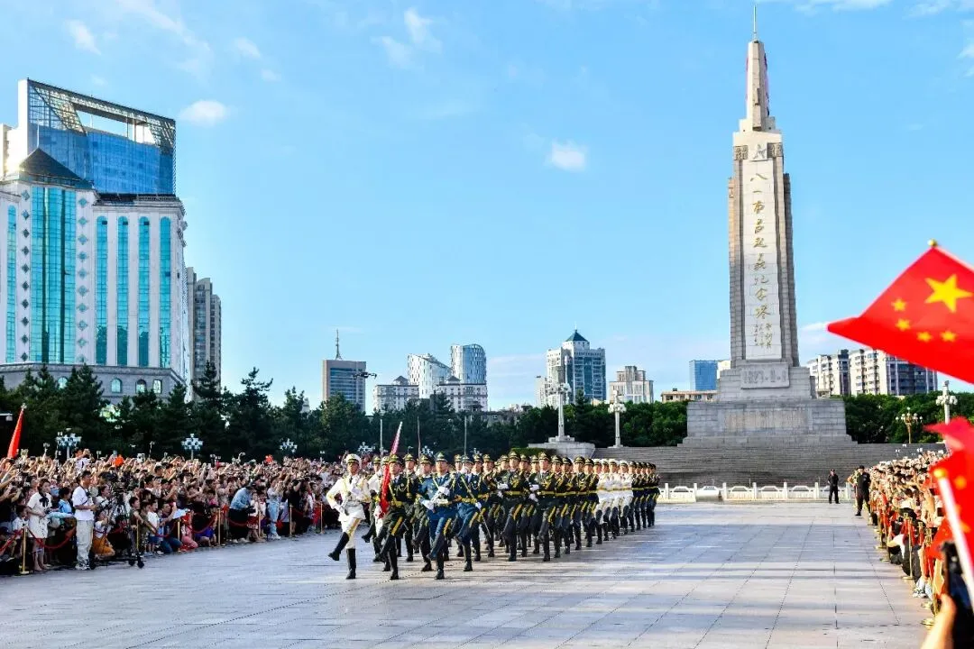 当书卷气息遇见红色热血,南昌的精神图景愈发饱满。八一广场中央圆心处,这座英雄城的“城市原点”,承载着南昌的地理溯源、文化传承与城市精神,成为市民追溯城市历史、凝聚集体记忆的精神地标。每月一日,八一广场总会上演这座城市最庄严的仪式。