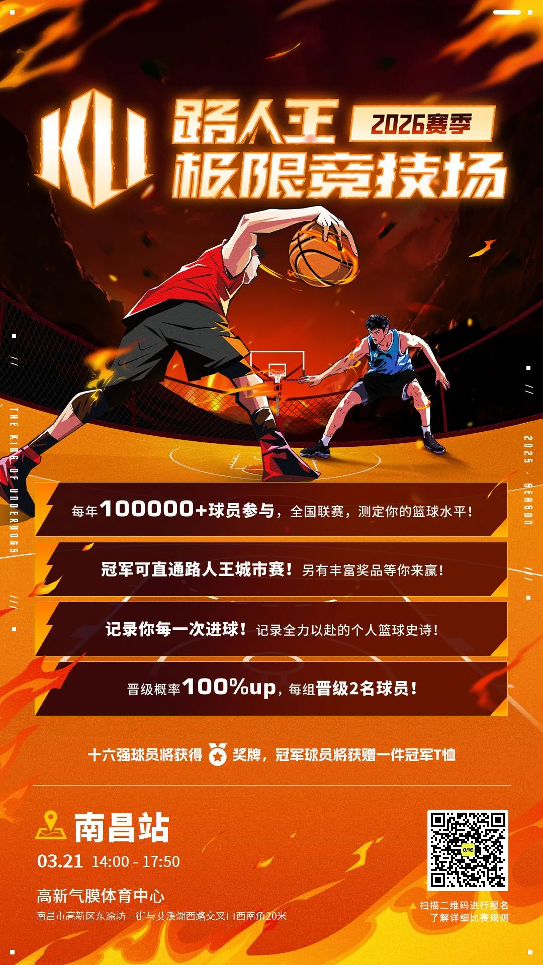路人王「极限竞技场」侧重于打造纯粹的篮球竞技环境,搭配专业的裁判和路人王专属的赛事流程,帮助球员全心投入比赛,不断逼近并超越自己的极限,为冲向更高级别的赛场而努力!