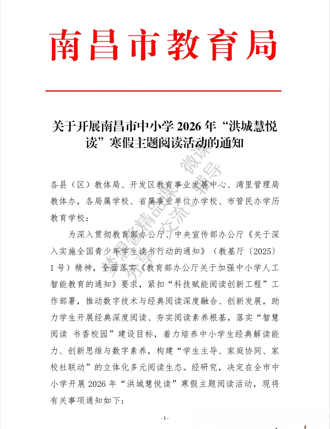 >南昌市关于开展中小学2026年"洪城慧悦读"寒假主题阅读活动的通知