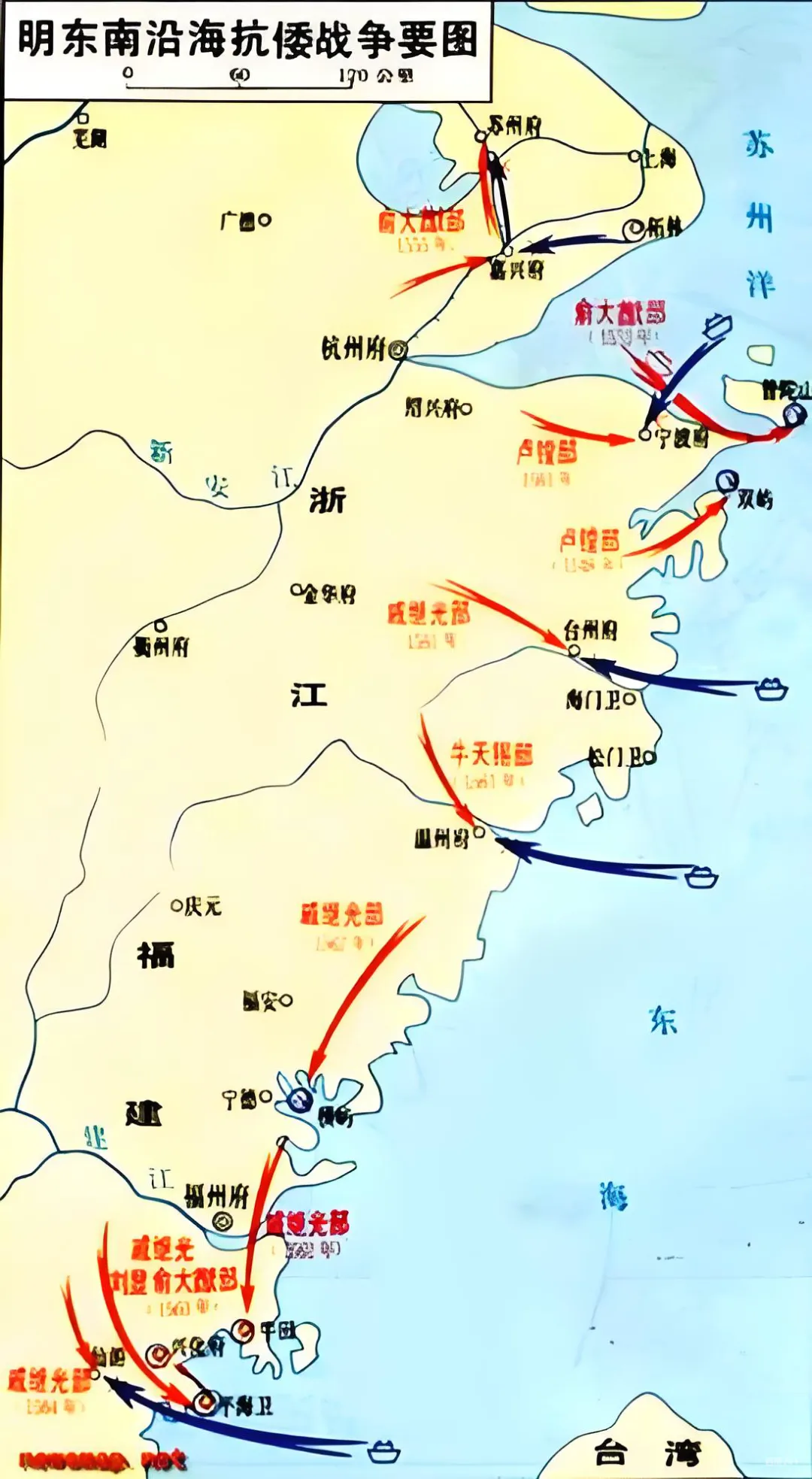 强强联合 围歼倭寇——嘉靖四十一年(公元1562年),福建的倭患危急,刘显奉命率军支援,与戚继光联手作战,多次击败倭寇,几乎将当地原有倭寇歼灭殆尽。同年下半年,刘显与俞大猷在广东汕尾遮浪会师,联手截击劫掠福清的倭寇,并将其全部歼灭。