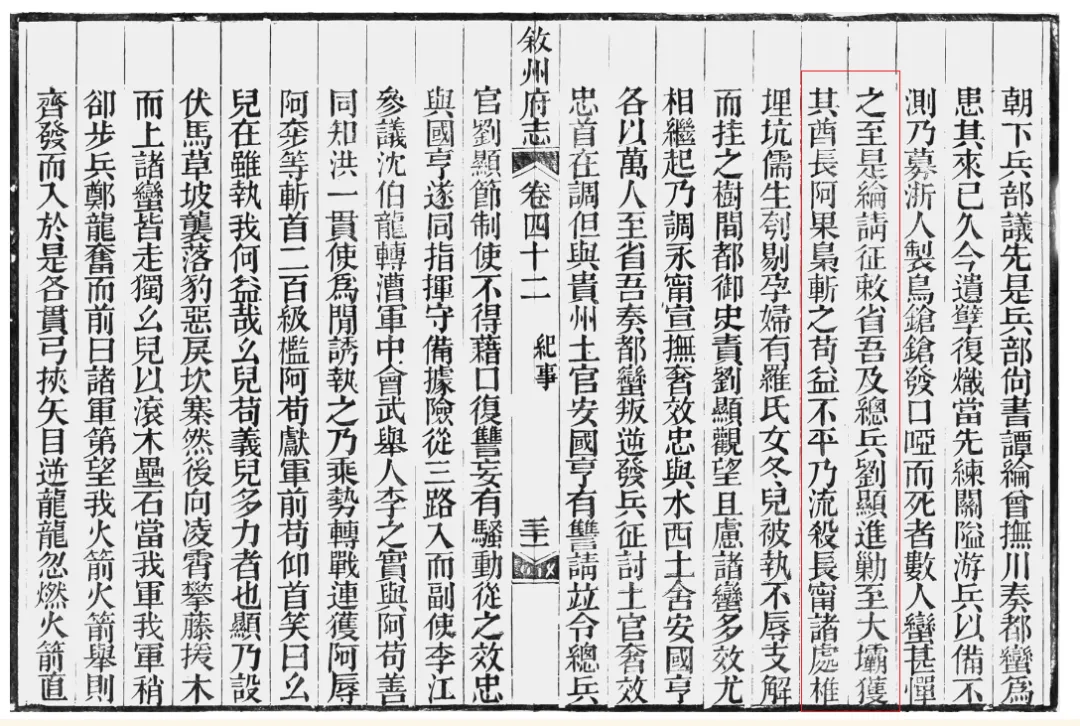 ▲光绪《叙州府志卷四十二·记事》中关于曾省吾、刘显平定都掌蛮的部分记载