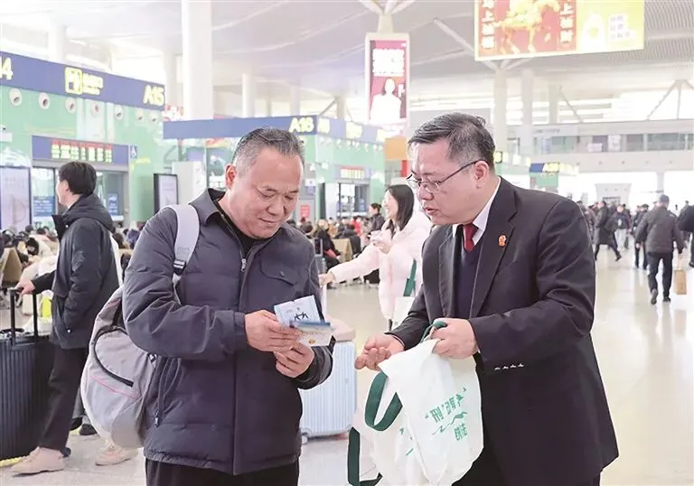 2月2日,春运首日,江西省高级人民法院、南昌铁路运输法院两级法院,联合光大银行南昌分行、中国铁路南昌局集团公司,在南昌西站候车大厅共同开展“金融安全共守护 全民防非迎新春”普法宣传活动。活动中,法官、金融专家与铁路法务人员组成联合普法团队,通过以案说法、互动问答、发放手册、现场演示等多种形式,向旅客普及防范非法集资与电信网络诈骗的知识,并解答法律与金融安全问题。