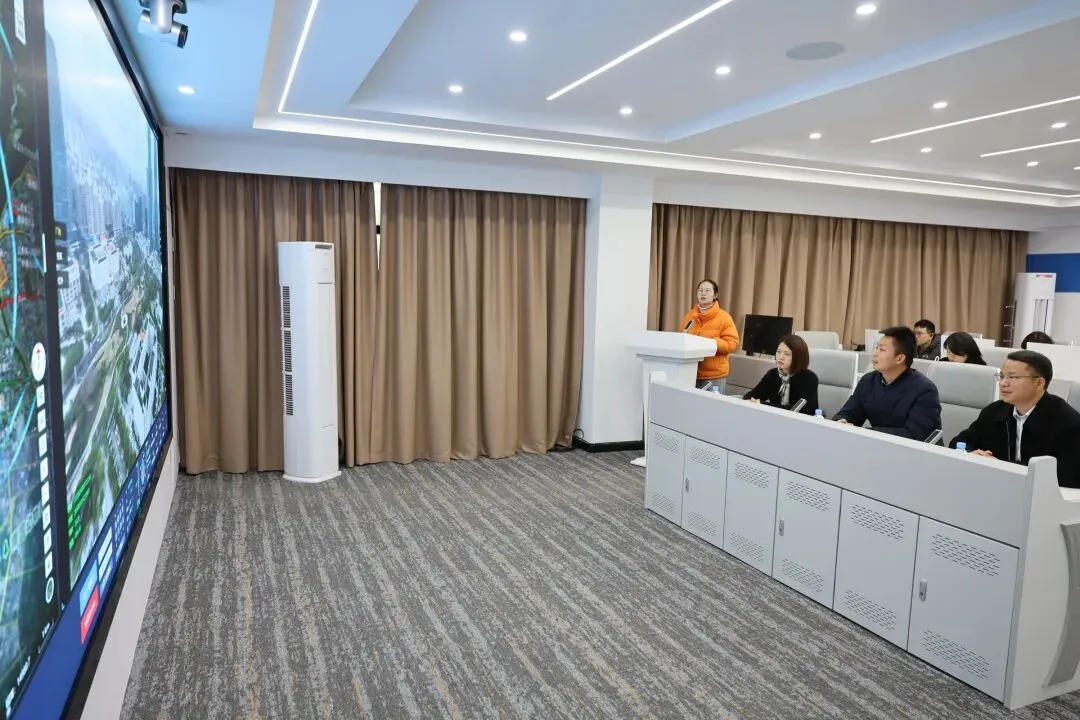 周魁一行实地考察了无人机智慧巡检指挥车的实战配置,现场观摩“一网统飞”平台操作演示,详细了解其在应急通信、实时监控与现场调度等方面的功能与成效。