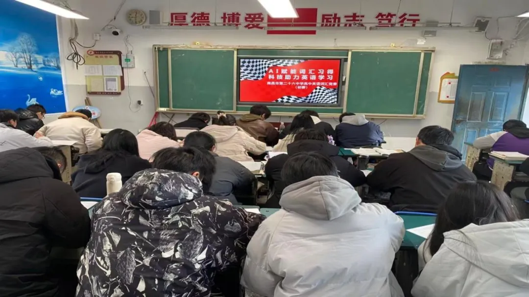 在科技与教育深度融合的浪潮下,为打破传统词汇学习的局限,激发同学们的英语学习热情,南昌二十六中近期“AI赋能词汇习得,科技助力英语拔尖——高中英语智能词汇挑战赛”学科素养活动顺利开展。从班级初赛到线上决赛,同学们以词为刃、以智为翼,展现了扎实的词汇功底与积极的竞技风采。