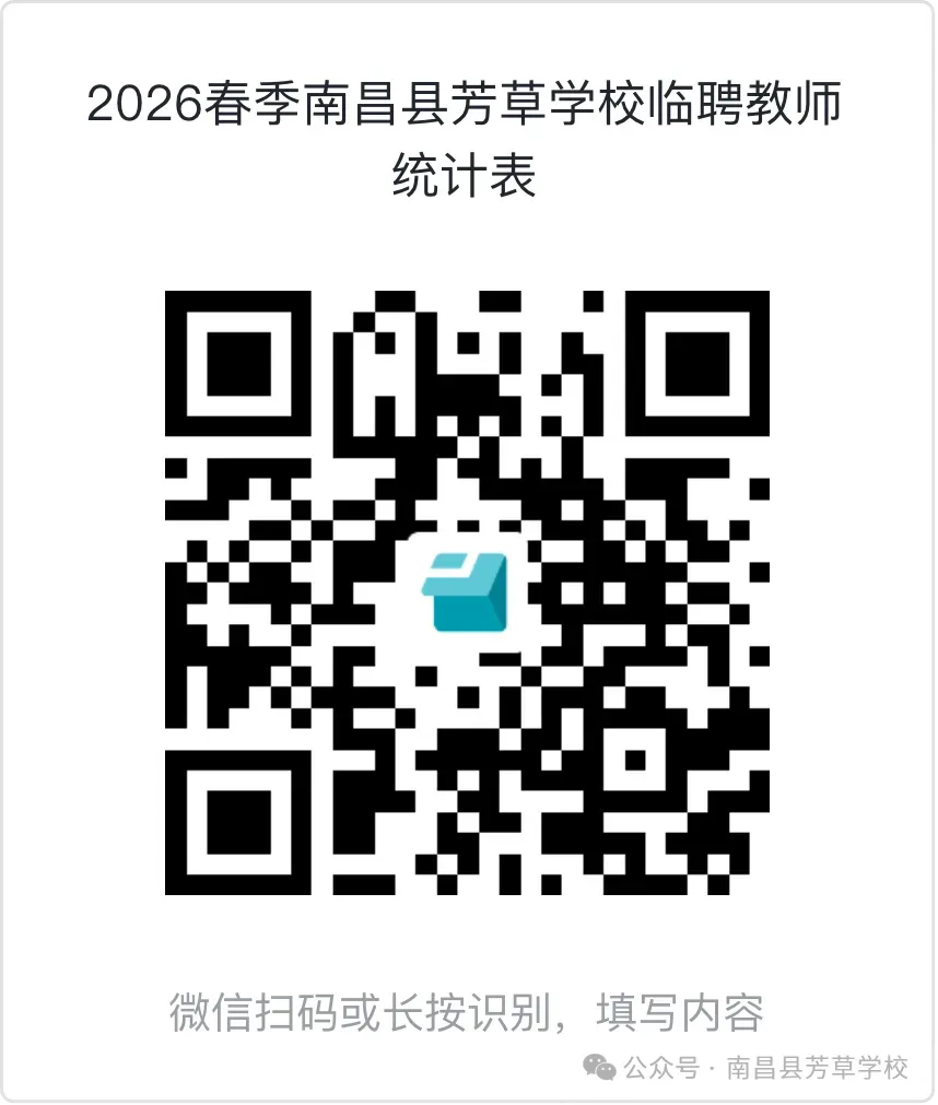声明:本微信公众号刊载此文,无任何商业目的,纯属公益转发,目的是架起求职者和用人单位之间的桥梁,传递更多的招聘就业信息,请您找工作时候务必高度警惕各类求职陷阱。若来源标注错误或侵犯了您的合法权益,请及时与我们联系,我们将及时更正、删除或依法处理,微信号(含:商务合作):sqdzry。南昌县芳草学校是一所九年一贯制公办学校,现有芳草路和复兴路两个校区。学校秉承“志洁行芳 坚韧如草”的办学理念,始终致力于为学生提供优质的教育环境。为满足2026年春季学期学校发展和教育教学工作需要,现面向社会公开招聘一批临聘教师。我们热忱欢迎热爱教育、富有责任心和团队精神的优秀人才加入,携手共育芬芳,赋能成长!