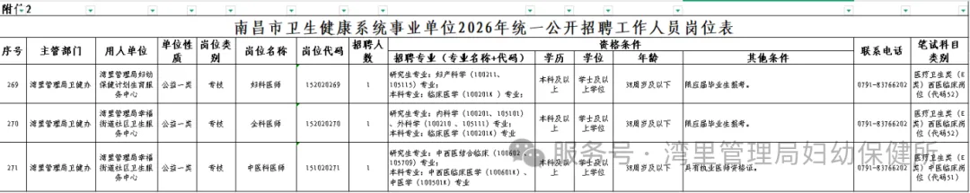 南昌市湾里管理局妇幼保健计划生育服务中心招聘公告