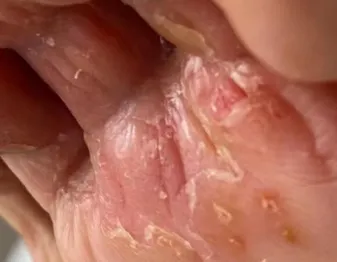 二是皮肤屏障受损,冬季空气干燥,脚部皮肤水分流失快,角质层变得干燥脆弱,真菌更容易侵入皮肤缝隙,引发瘙痒、脱皮,甚至皲裂。