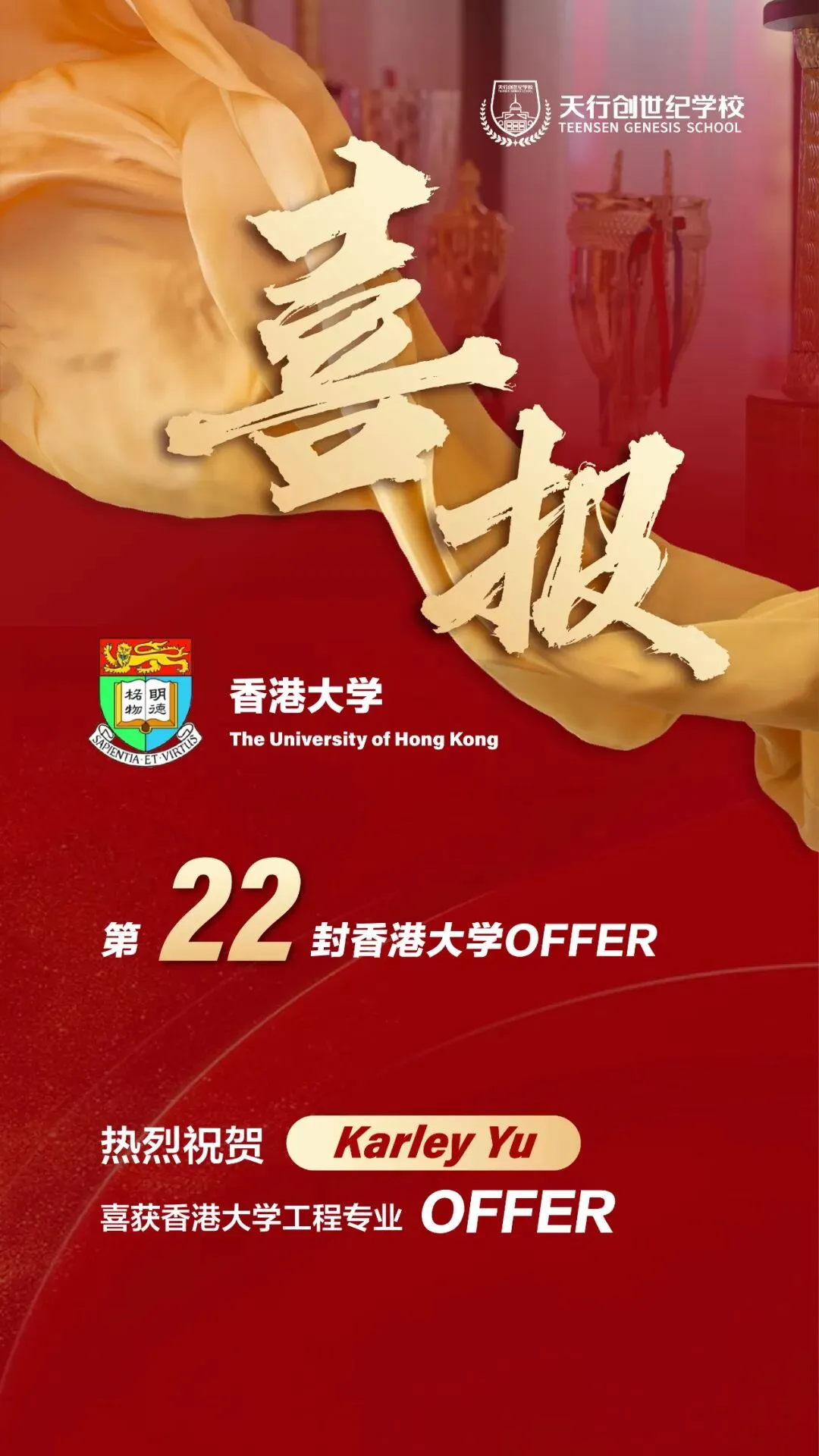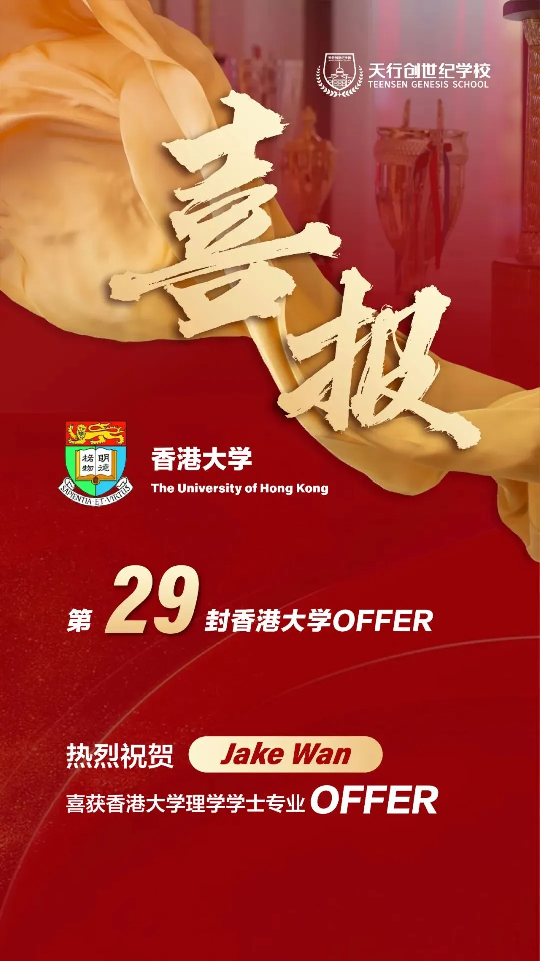 近年来,天行创世纪特高部凭借其卓越的教育质量和一站式升学指导,已成功助力众多学子圆梦香港顶尖学府,成为江西省录取香港TOP5名校人数最多的学校之一。