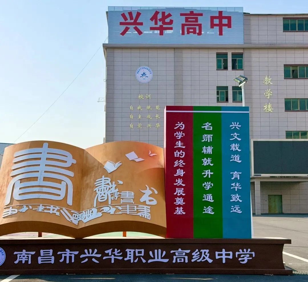 南昌市兴华职业高级中学是一所经南昌市教育局批准设立的全日制、寄宿式、全封闭管理的现代化职业高级中学。学校位于江西省南昌市进贤县经济开发区高新产业园人民大道1900号,人民大道与凤岭路交汇处,临近进贤县人民政府府地。校园占地面积40000平方米,建筑面积27219平方米。学校拥有现代化的教学大楼、设备先进的专业实训大楼、舒适整洁的学生公寓、图书馆、云机房、全新的塑胶运动场、篮球场等配套设施一应俱全。学校师资力量雄厚,配备有经验丰富的文化课教师,以及由合作企业选派行业专家、技术骨干担任专业课教学。学校开设有普职融通高考班、艺术高考班、职教高考班和工业机器人技术应用、新能源汽车制造与检测、美容美体艺术和艺术设计与制作四个专业。真正做到兴华职高、班班有特色,人人有特长。使每一位学生升学有优势、就业有能力,发展有通道。