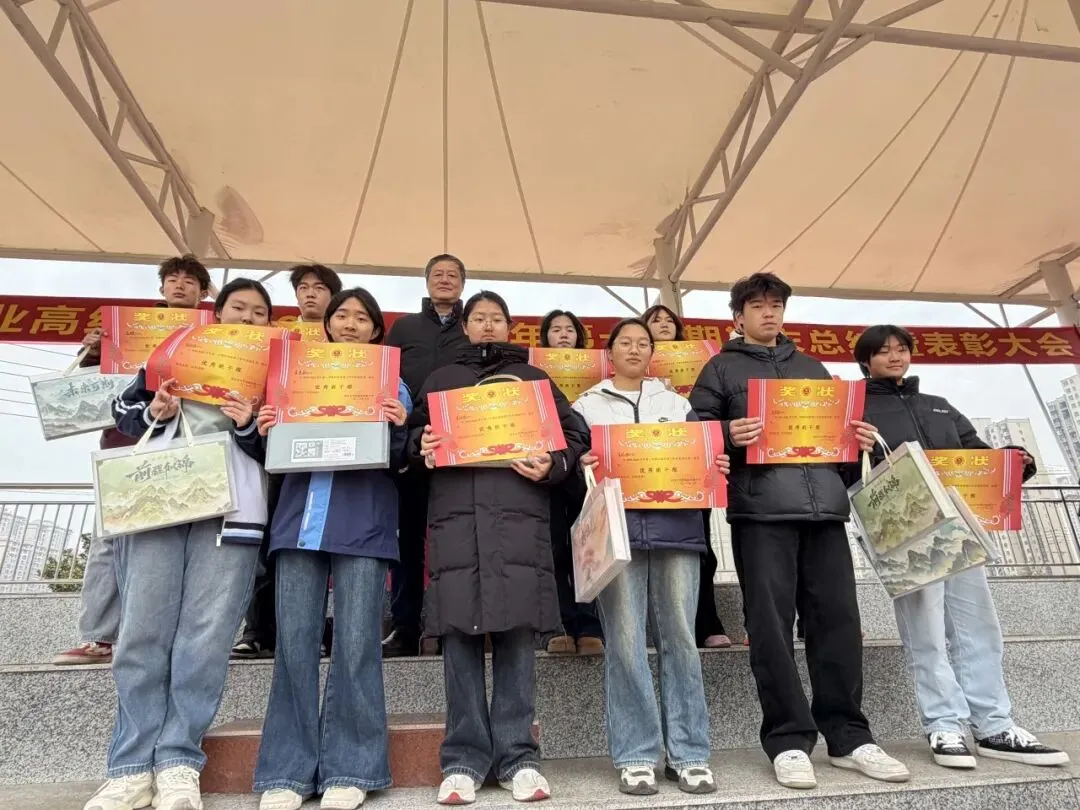 党支部书记夏进华、黄更生校长、黄辉秀副校长、熊浩主任、黄小来主任为获奖同学颁奖