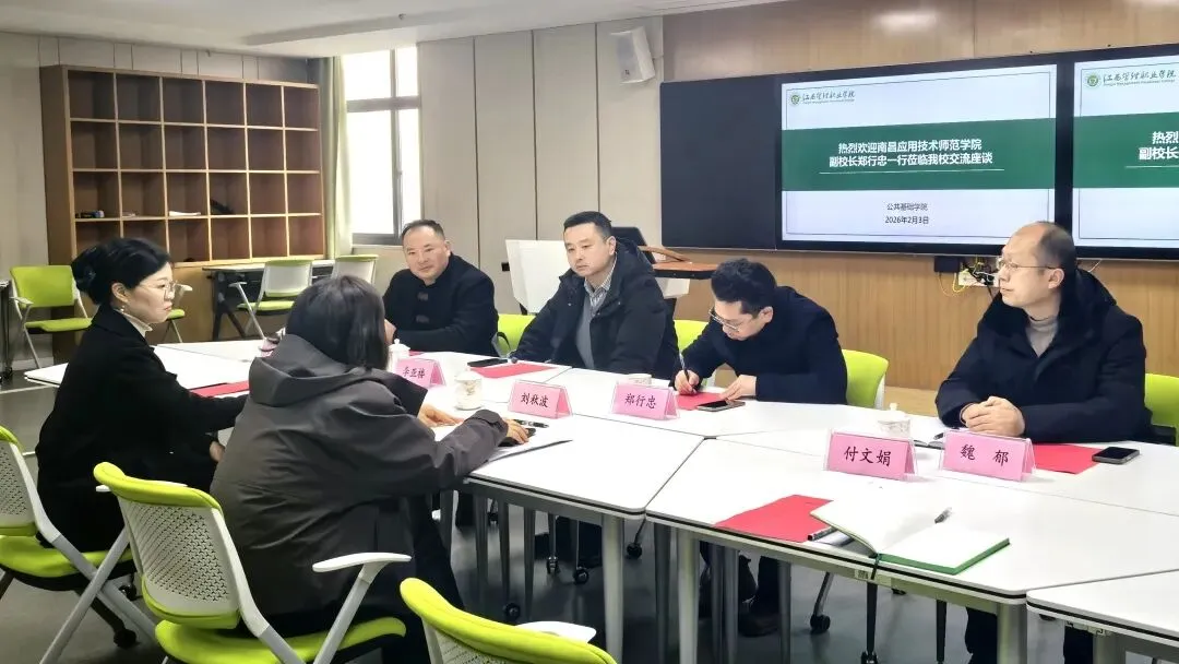 2月3日上午,南昌应用技术师范学院党委委员、副校长郑行忠一行到访我校考察交流并开展座谈。学校副校长刘秋波出席此次座谈会。