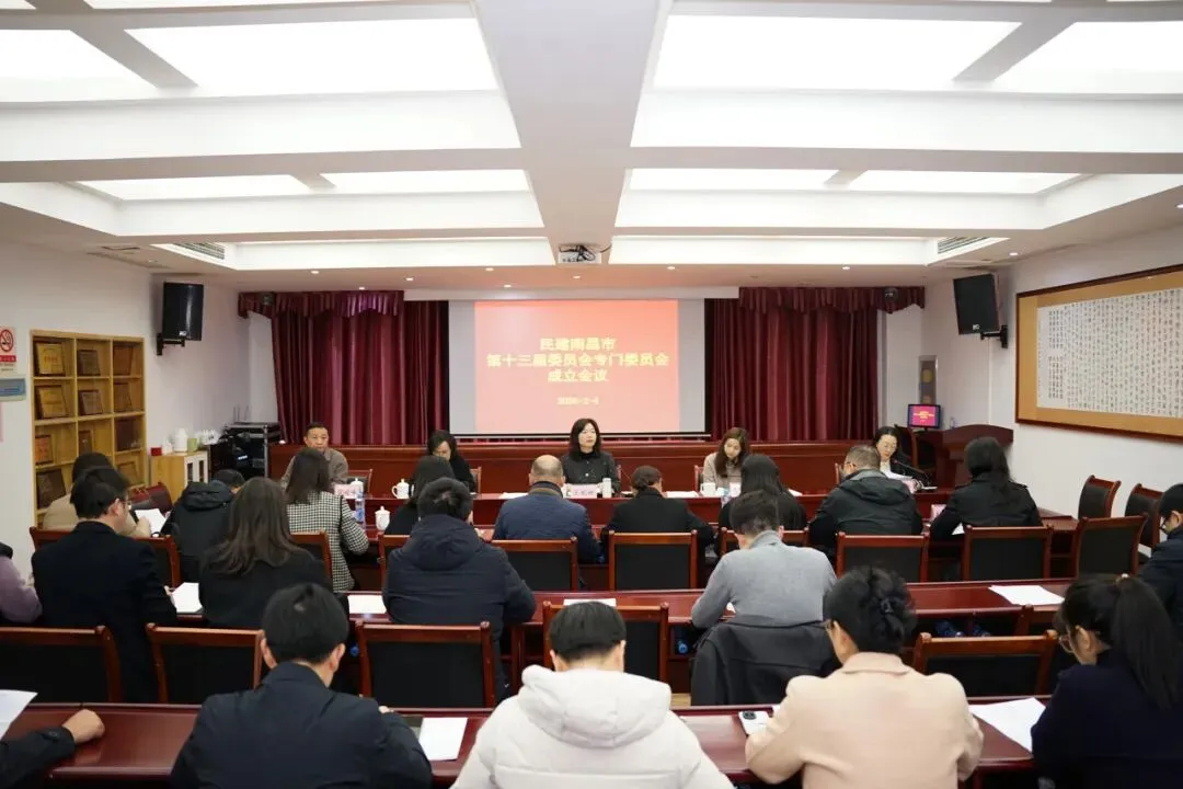 2026年2月4日,民建南昌市第十三届委员会专门委员会成立会议在市委会大会议室隆重召开。民建南昌市委会主委王妮娜出席会议并讲话,副主委贺龙茹、郑建辉、巢燕婷、雷峻峰出席会议。