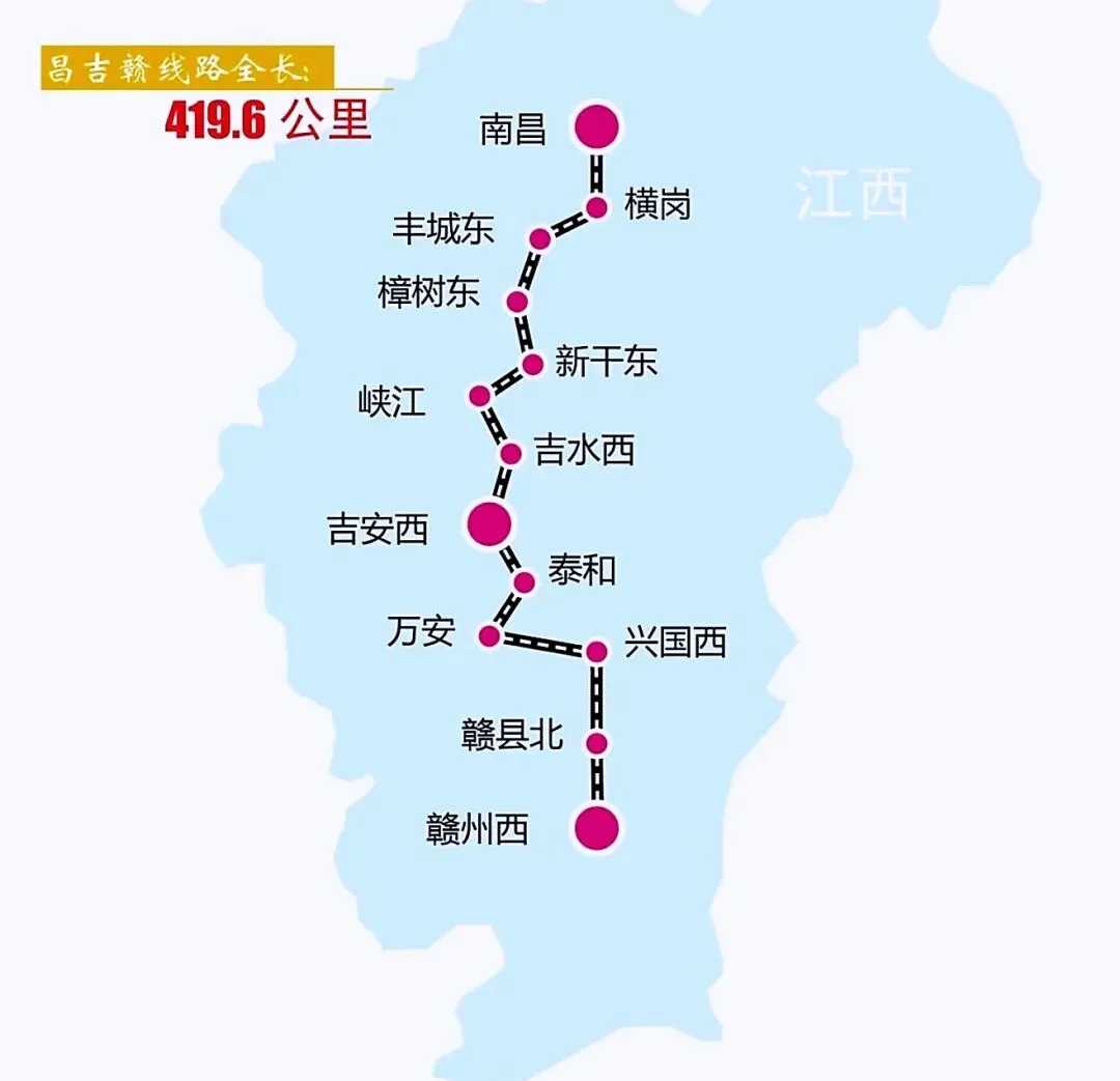 2019年12月,昌赣高铁建成通车,南昌米字形高铁枢纽再次取得重大项目,2021年12月随着赣深高铁通车,京九高铁南昌南路段实现全线贯通,南昌至粤港澳大湾区的高铁通道正式形成,南下再也不需要绕道长沙了,南昌初步建成全国性高铁枢纽。