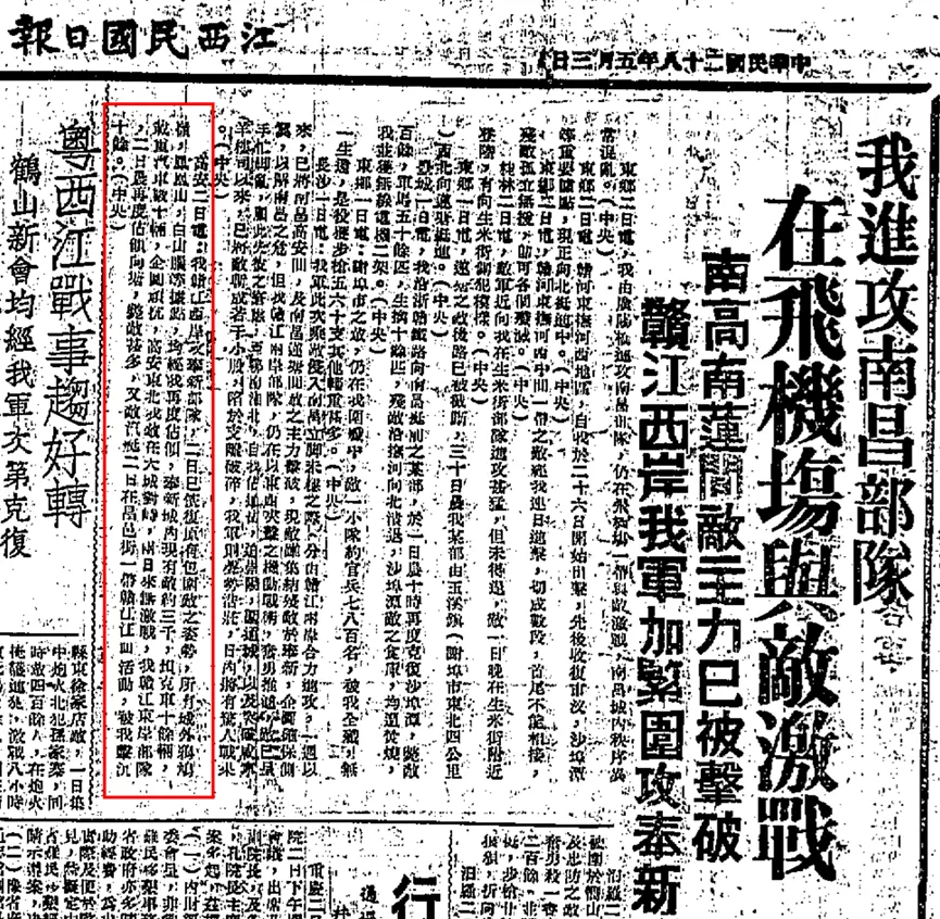1939年5月3日《江西民国日报》再度攻占鸦鸠岭的报道