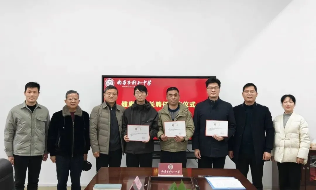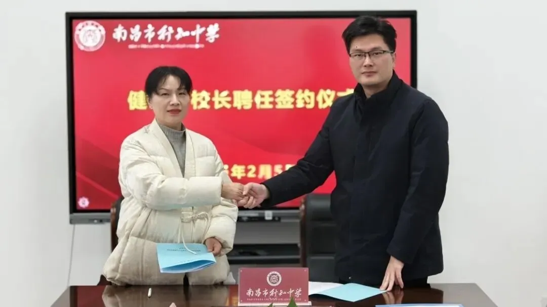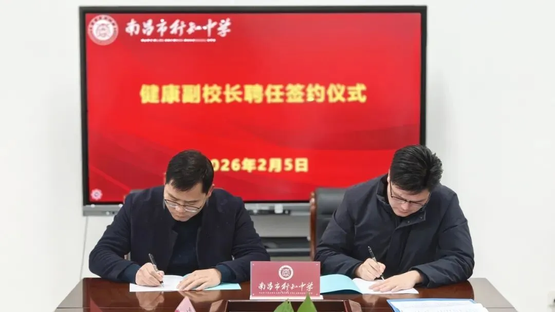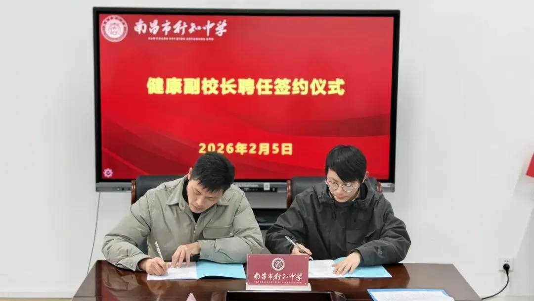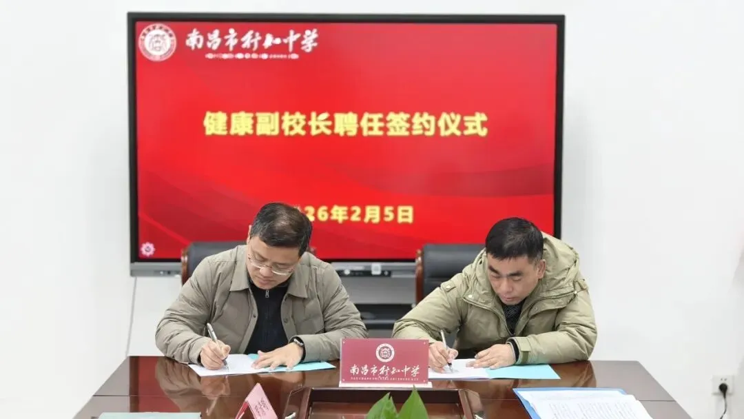 2026年2月5日上午,南昌市行知中学洛阳路校区隆重举行医教融合共同体健康副校长聘任签约仪式。学校党委副书记、校长占志斌,党委委员、副校长汪辉,党委委员、副校长黄志斌,天佑路校区执行校长李琴,坛子口校区执行校长罗清明,以及受聘健康副校长——南昌市人民医院胡文杰、张玮主任,南昌市中心医院陈敏主任,南昌市洪都中医院李亚峰主任共同出席。仪式由政教处主任罗希主持。