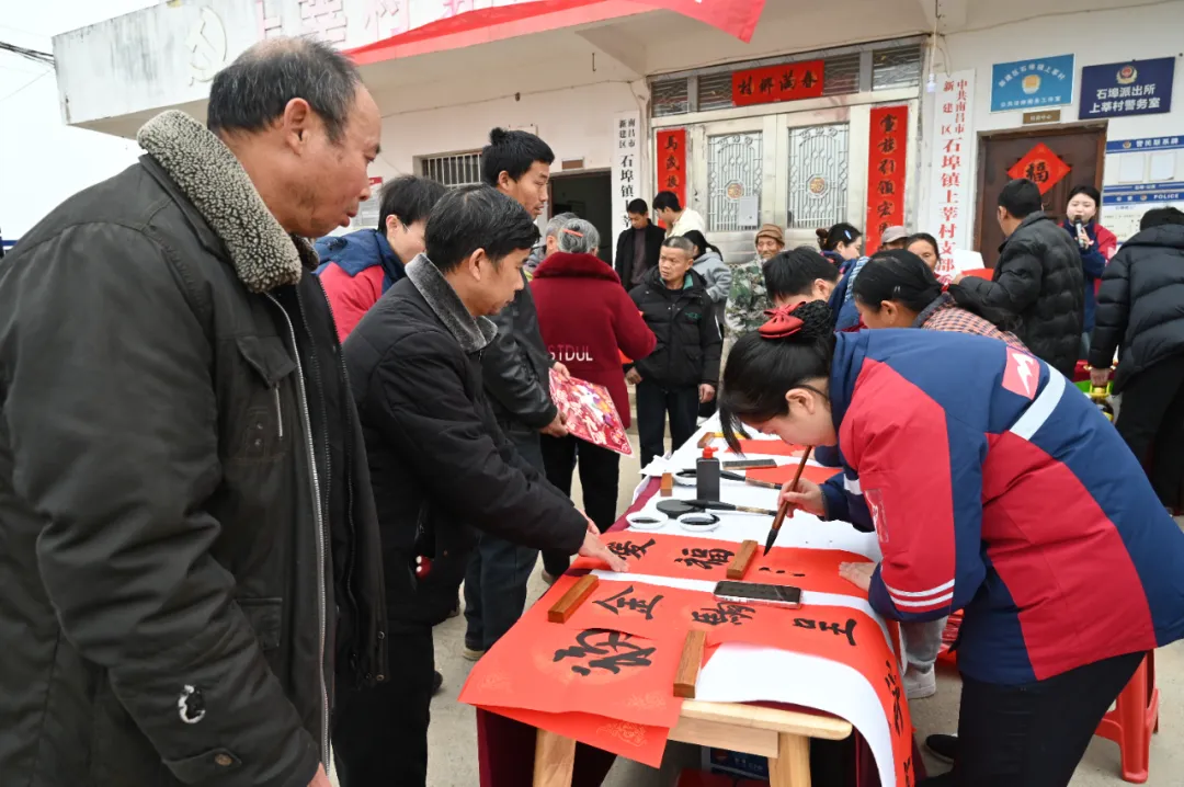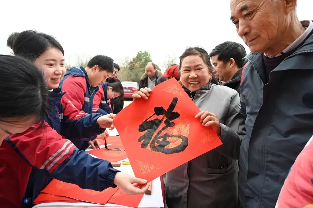 “这字写得真精神!比买的春联更有温度!”村民李大爷手捧墨迹未干的春联,连连称赞,“早就盼着你们来,这份心意咱们记在心里。”寓意吉祥