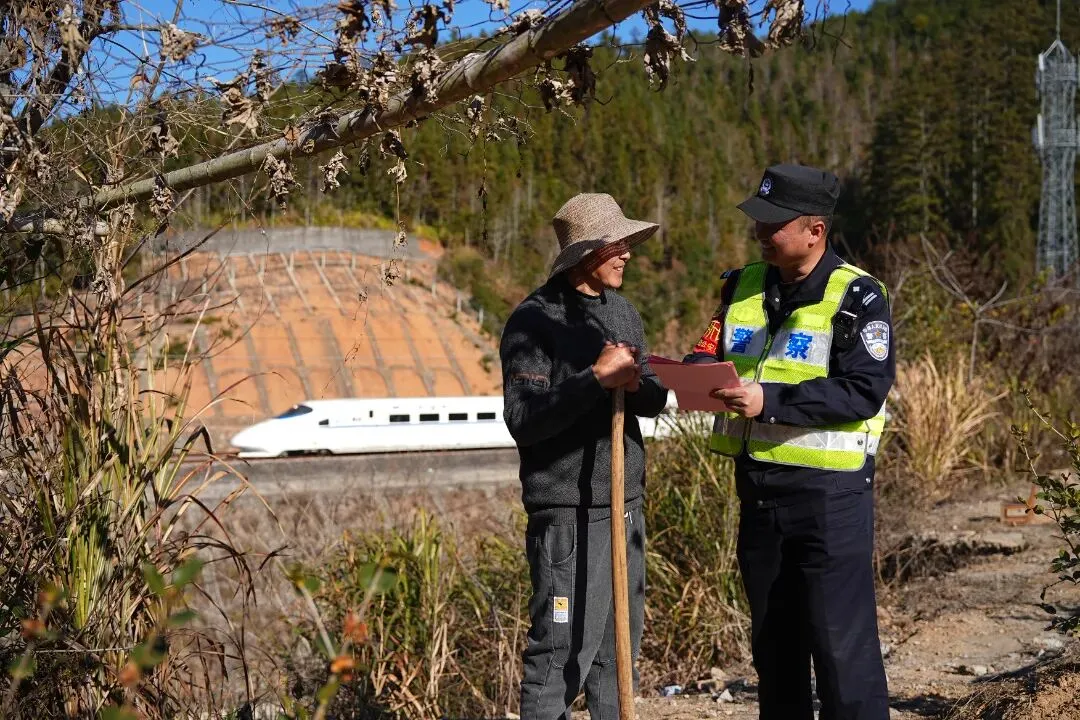 故事:在建宁县蜿蜒的铁道线上,福州铁路公安处泰宁站派出所民警始终坚守岗位,用心做好每次铁路线路安全宣传,为辖区平安稳定筑起坚实屏障。