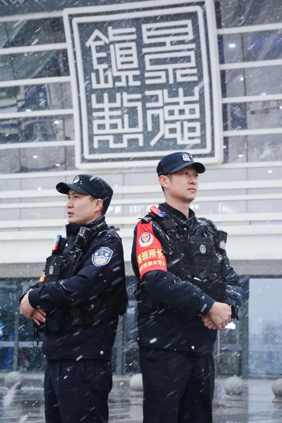 故事:寒潮来袭,景德镇北站派出所执勤民警在站前广场巡逻值守,切实提高见警率、管事率。