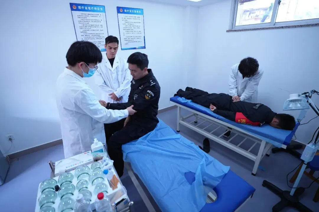 故事:康复医师受邀走进警营,为福州铁路公安处特警队员做理疗康复。