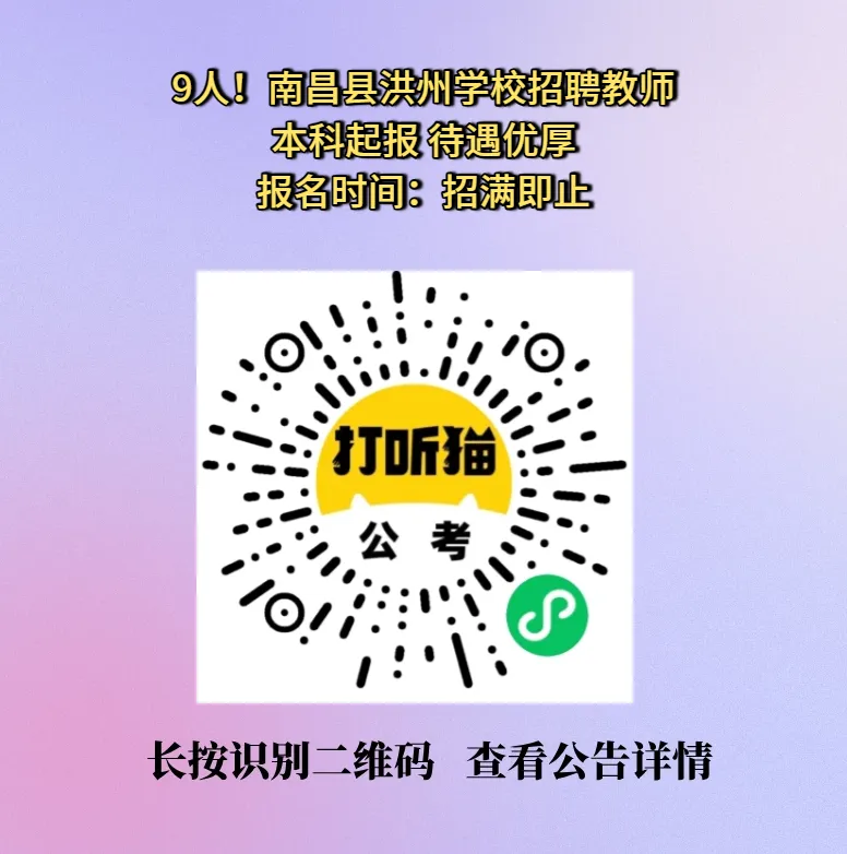 【南昌招聘】9人!南昌县洪州学校招聘教师!