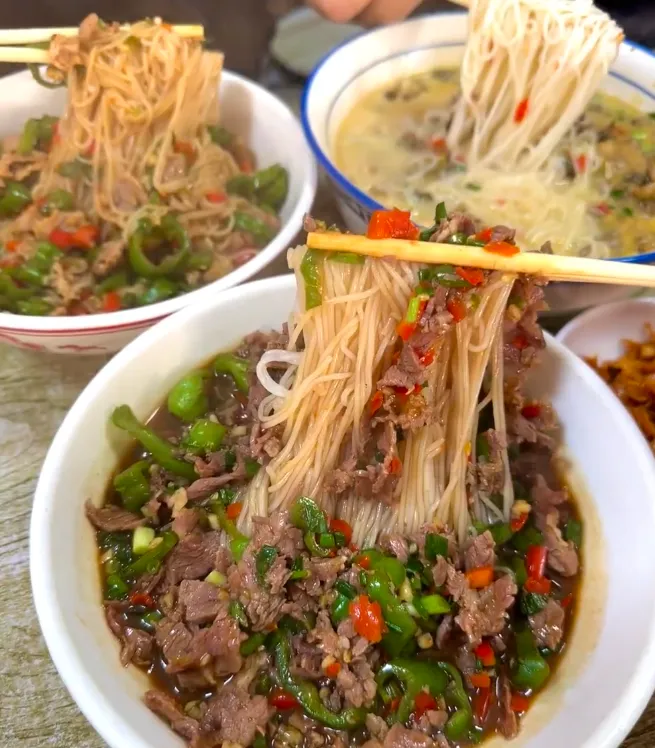 早上,一碗临川牛杂粉,汤浓、粉滑,辣得温柔。