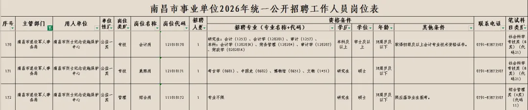 南昌市退役军人服务中心岗位