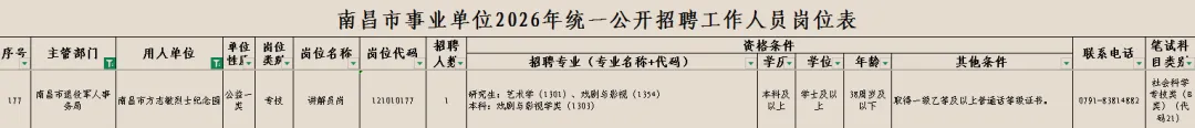 南昌市事业单位2026年统一公开招聘工作人员公告