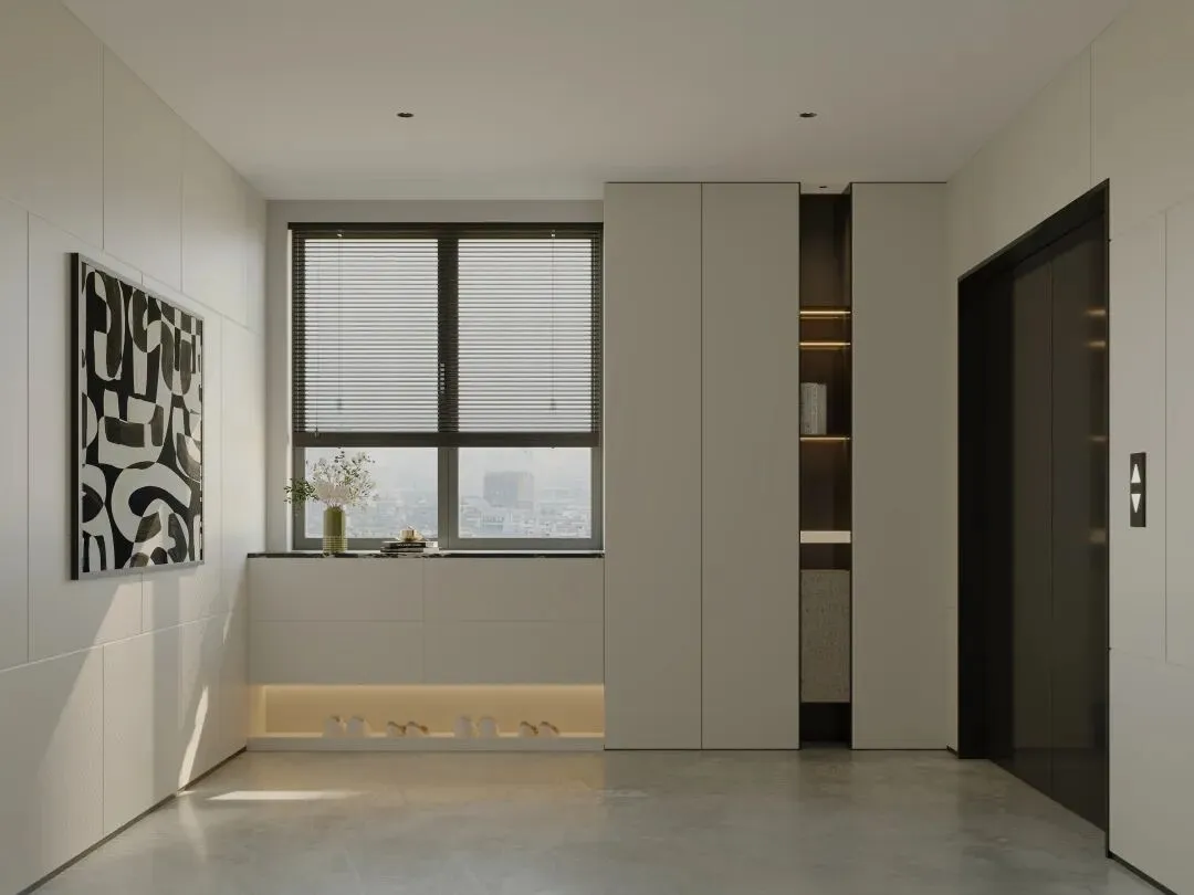 🔹入户鞋柜采用虚实结合的设计,封闭柜藏起日常杂物,开放格随手放置钥匙包包,底部留空区域方便换鞋,细节控狂喜。