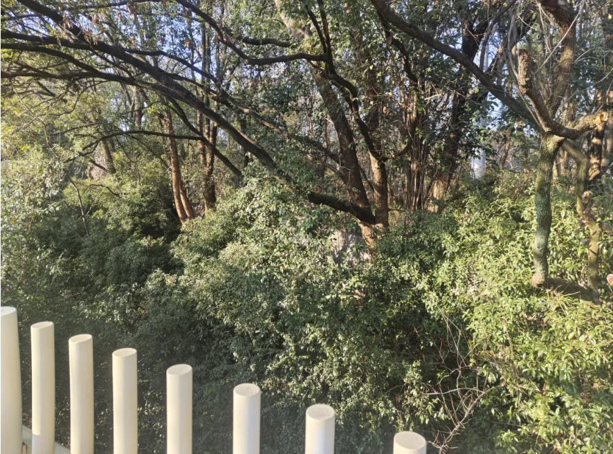▲女贞丛观鸟点(可见茂密植被)