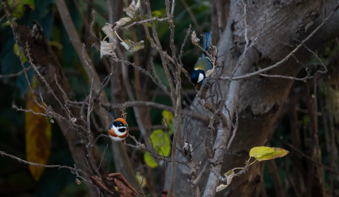 ·大山雀、淡眉雀鹛与强脚树莺:黑白分明的大山雀、颜色朴素的淡眉雀鹛,以及只闻其响亮“回-回-回”歌声、难觅其踪的强脚树莺,共同构成了这个热闹的群落。