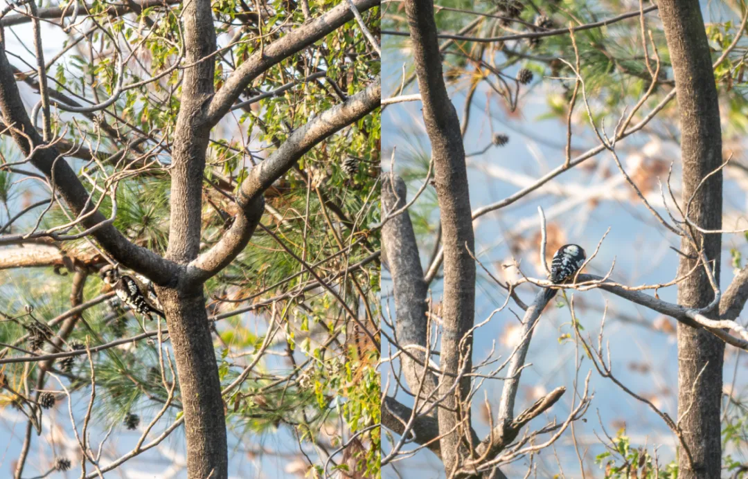 ▲星头啄木鸟,背羽黑白条纹明显,常在高大树干上取食昆虫