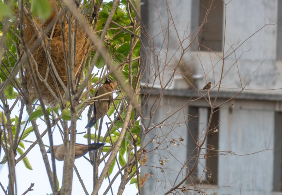 ▲白腰文鸟与它的球形巢(左),小鹀(右)